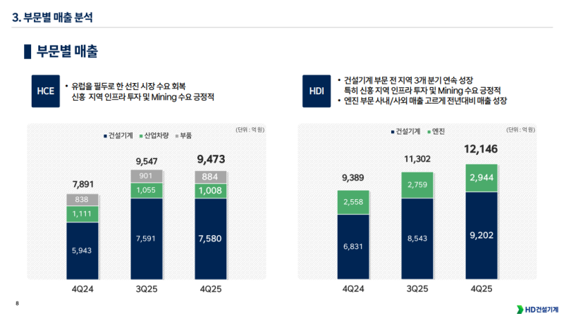 • 건설기계 사업부 매출: 전년 대비 +35% 성장