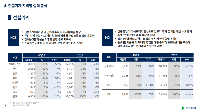 • HD현대건설기계 매출액: 3조 7,765억 원 (YoY +9.8%)