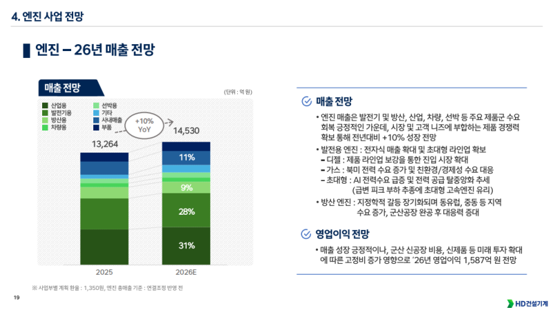 • 엔진 2025년 매출 1조 3,264억 원 대비 +10% 성장한 1조 4,530억 원 목표
