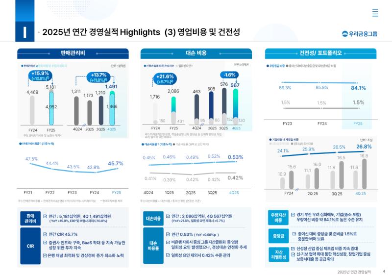 • 2026년 대손비용 전년 대비 약 20% 감축 계획