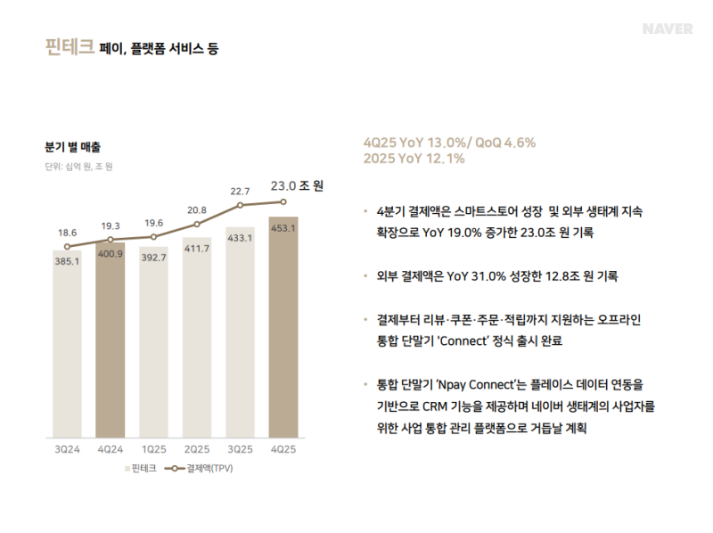• 4Q25 결제액 23조 원(YoY +19.0%) 달성, 온·오프라인 외부 생태계 확장 지속