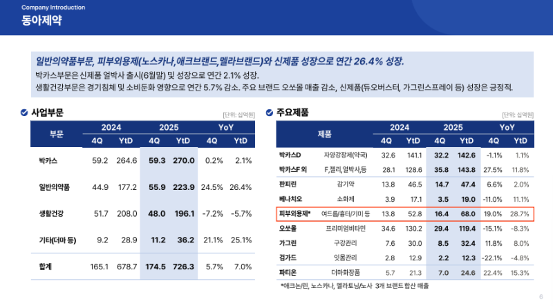 • 2025년 피부외용제 3종 및 신제품 성장으로 26.4% 성장