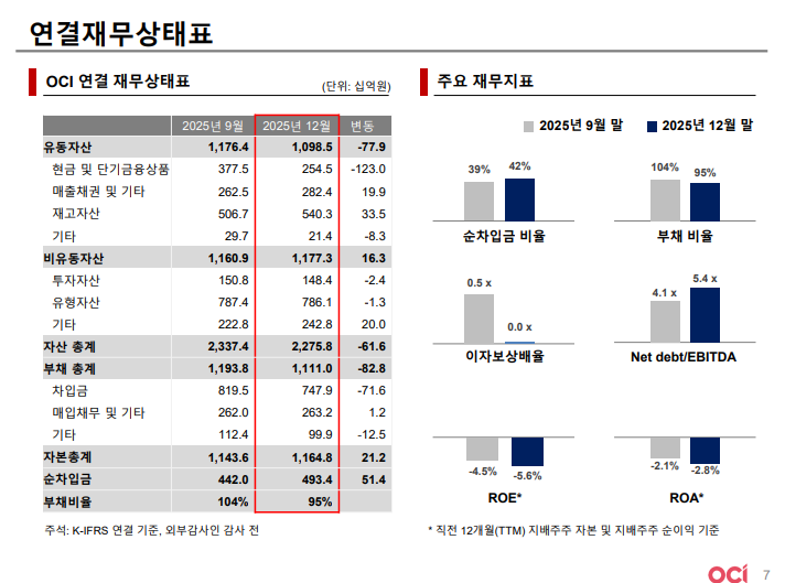 • 중국 카본블랙 생산 법인 오제이씨(OJCB) 청산 관련 재고 및 유무형자산 손상 반영으로 4Q25 일회성 비용 발생