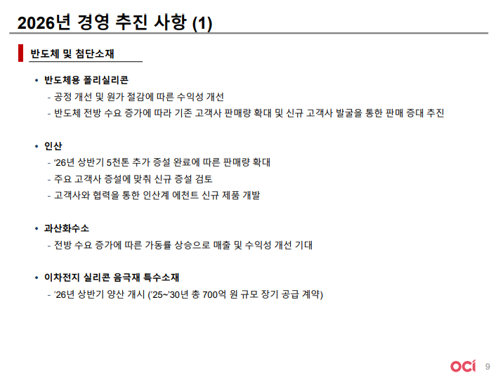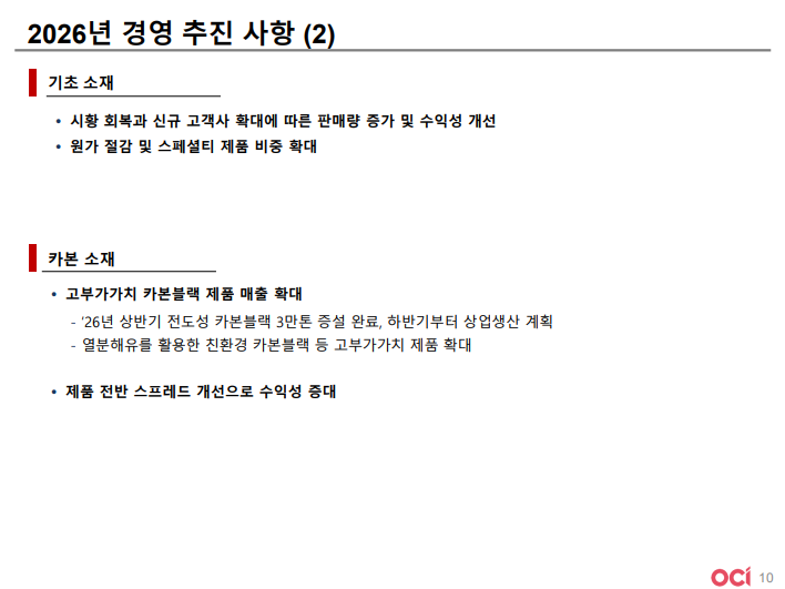 • 이러한 흐름을 이어가 2026년에는 기초 소재와 카본 케미칼의 안정적인 실적을 기반으로 반도체 소재 성장이 더해지며 실적 개선과 중장기 성장 추진