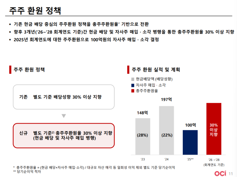 • 2026년부터 향후 3년간 별도 기준 총주주환원율 30% 이상 지향