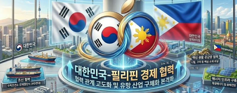 특히 2024년 12월 FTA 발효 이후 전기전자, 조선, 핵심광물 등 분야에서 우리 기업의 진출이 확대되며 한국의 필리핀 내 투자 위상은 2023년 10위권 밖에서 2025년 4위로 급격히 상승했다.