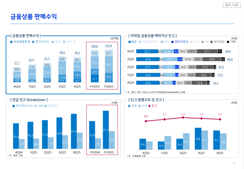 • 금융상품 판매수익 1,626억 원 유지, 연금 잔고 21.3조 → 30.9조 확대