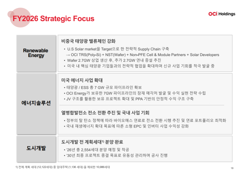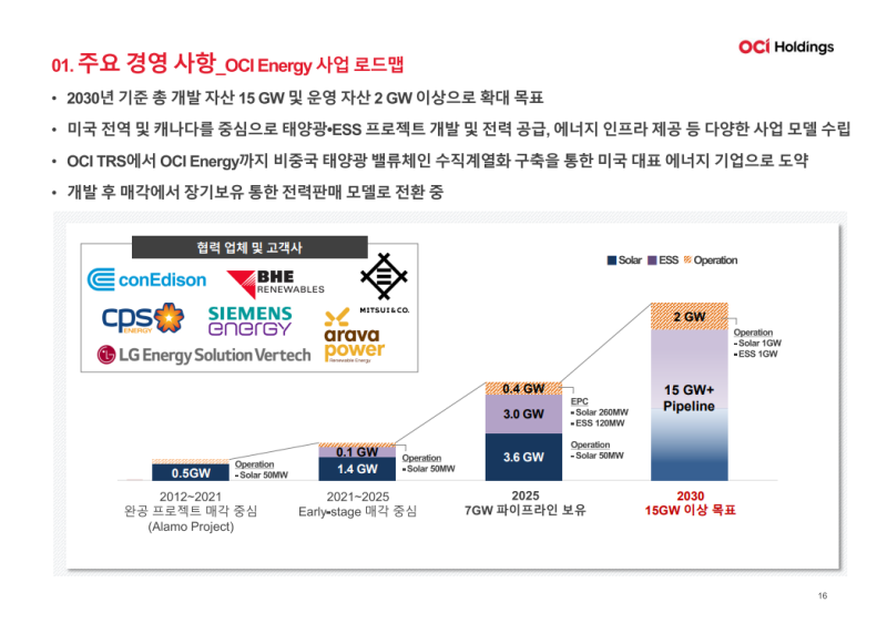 • OCI Energy는 현재 약 7GW 규모 태양광·ESS 파이프라인 보유
